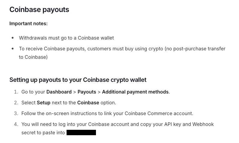 Example 1: this platform only supports payouts to Coinbase-issued wallets, requiring users to generate API keys through the Coinbase Developer Platform to receive funds.